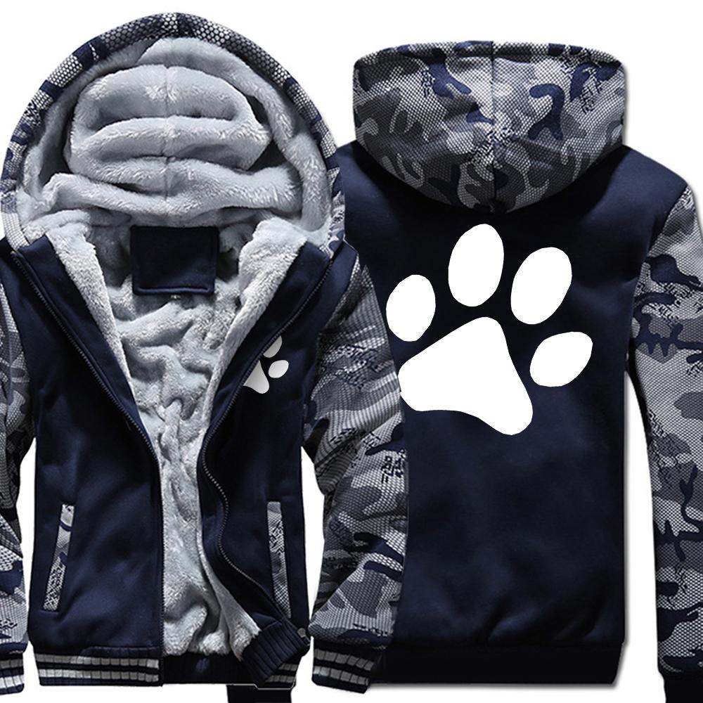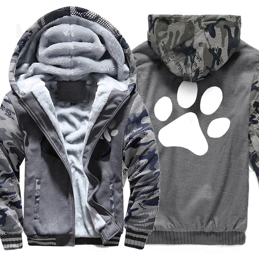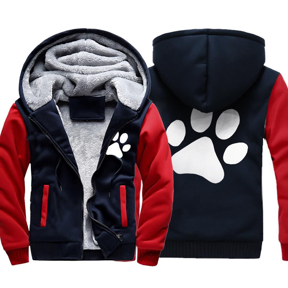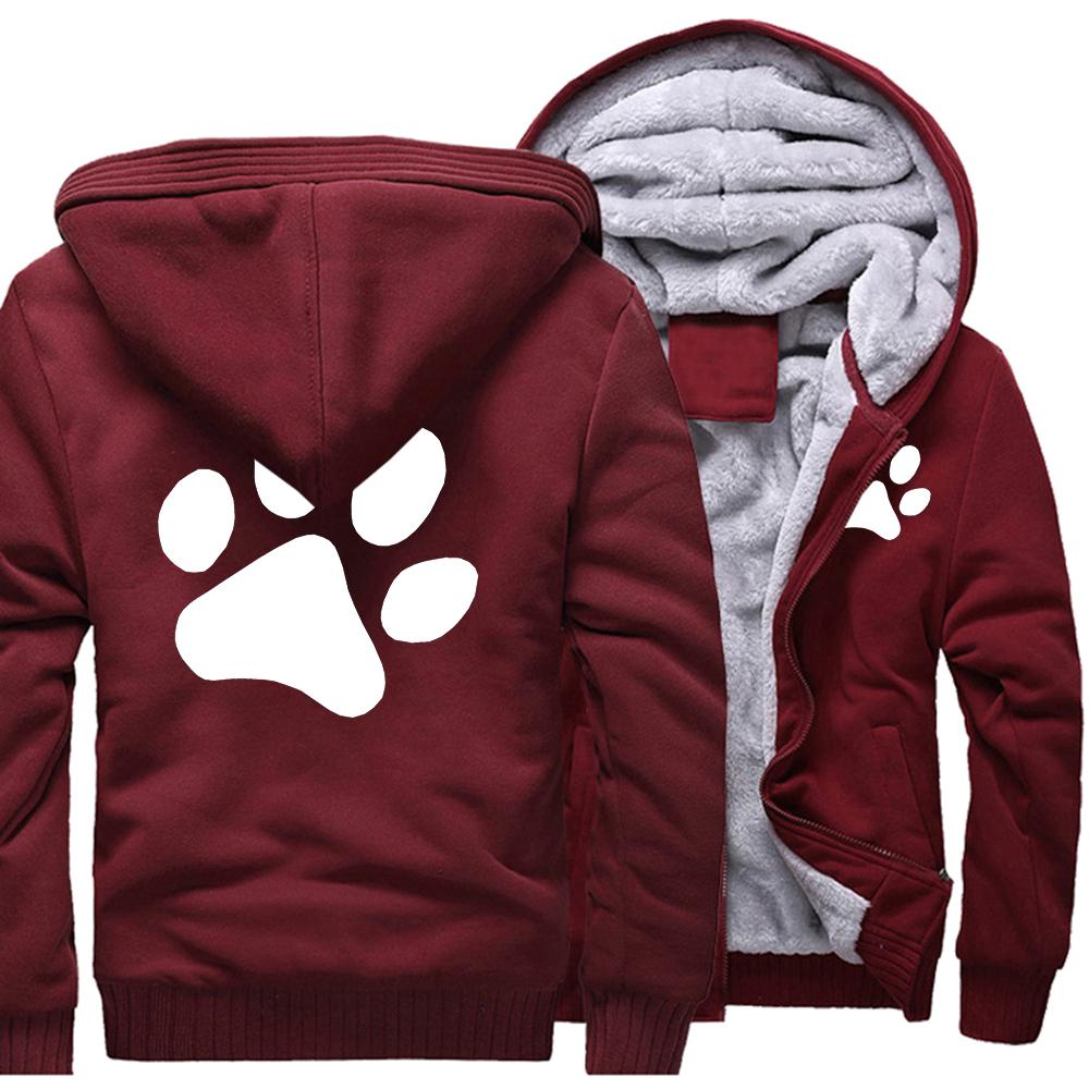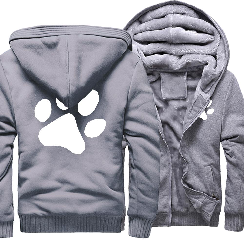 Kawaii мультфильм собака с принтом лапы толстовка мужская зимняя теплая утепленная толстовка повседневный спортивный костюм в стиле хип-хоп куртка на молнии ветрозащитное пальто