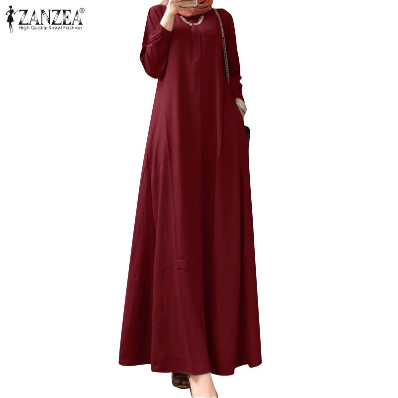 ZANZEA Весеннее свободное повседневное женское платье с круглым вырезом и длинными рукавами — купить товар онлайн с бесплатной доставкой по всему миру!