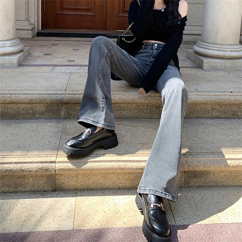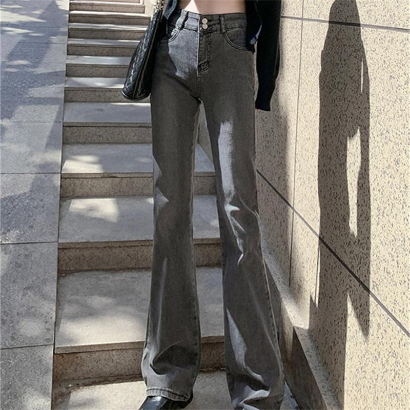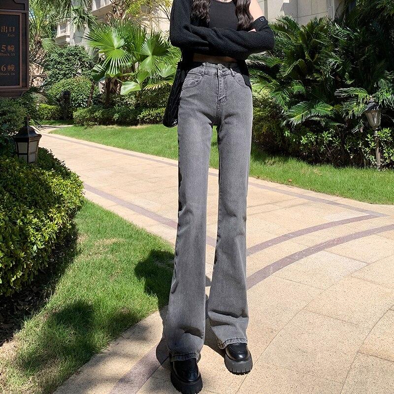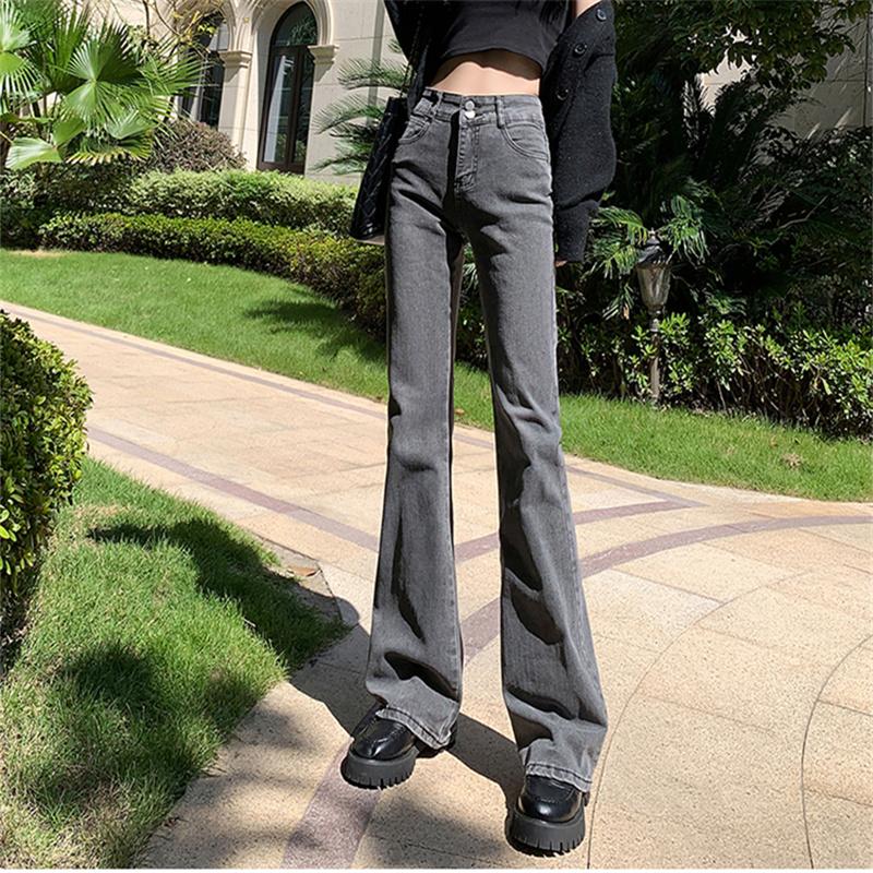 2022 весенне-осенние эластичные удобные брюки с высокой талией в Корейском модном стиле, джинсовые брюки, расклешенные джинсы для женщин, Harajuku