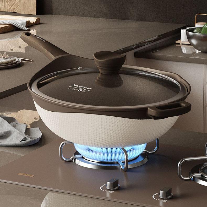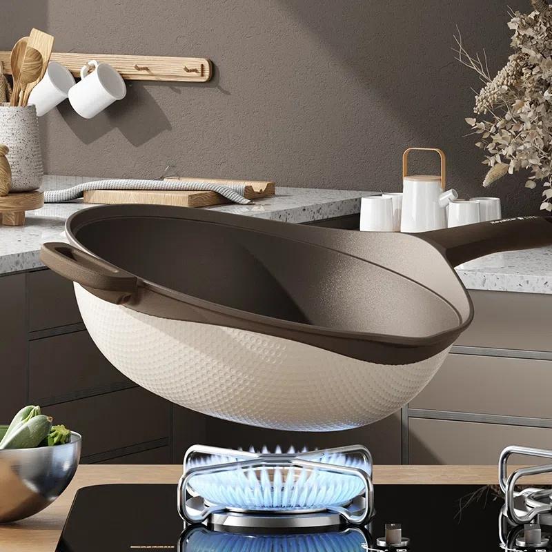 Сковорода из натуральной глины, антипригарная сковорода, бытовая бездымная двухцветная сковорода, индукционная плита, газовая плита, применима