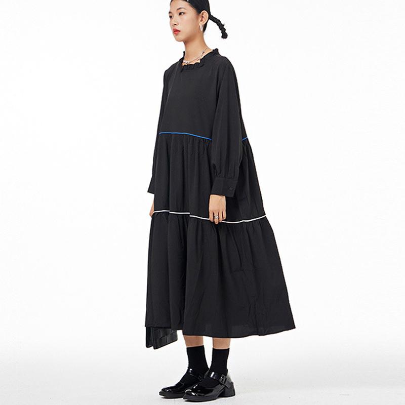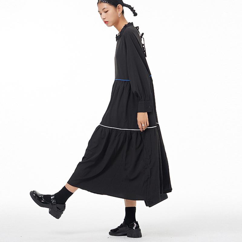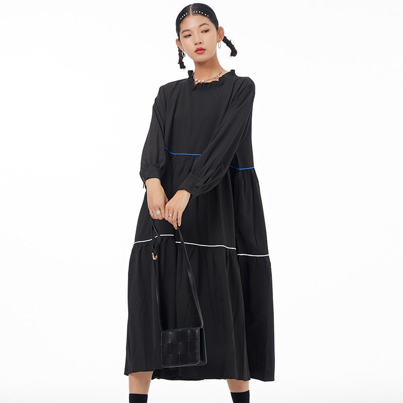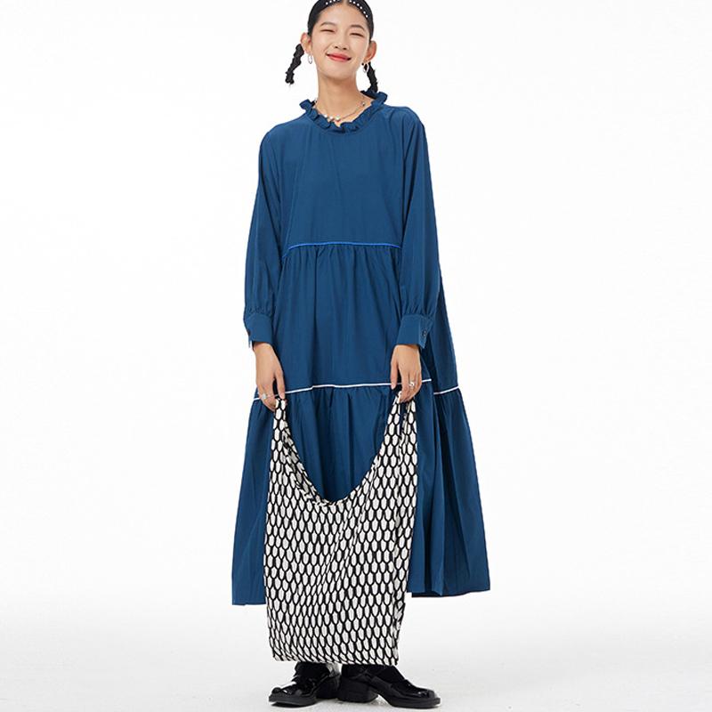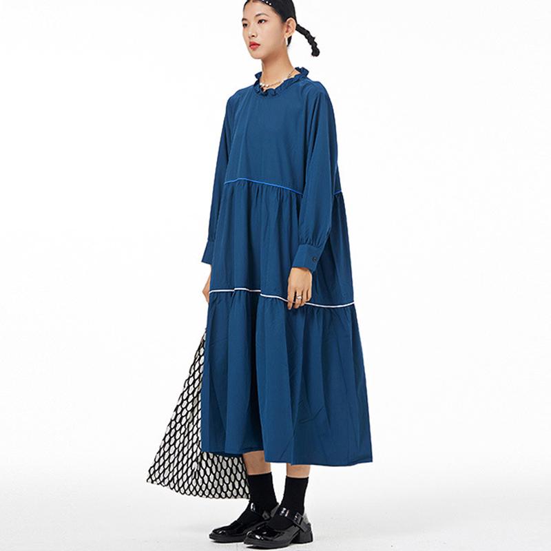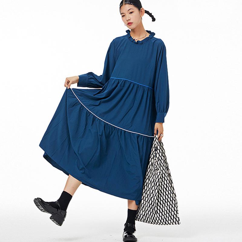 Johnature Модное женское весеннее платье, французские винтажные платья с оборками и воротником, однотонные, свободные, простые женские платья