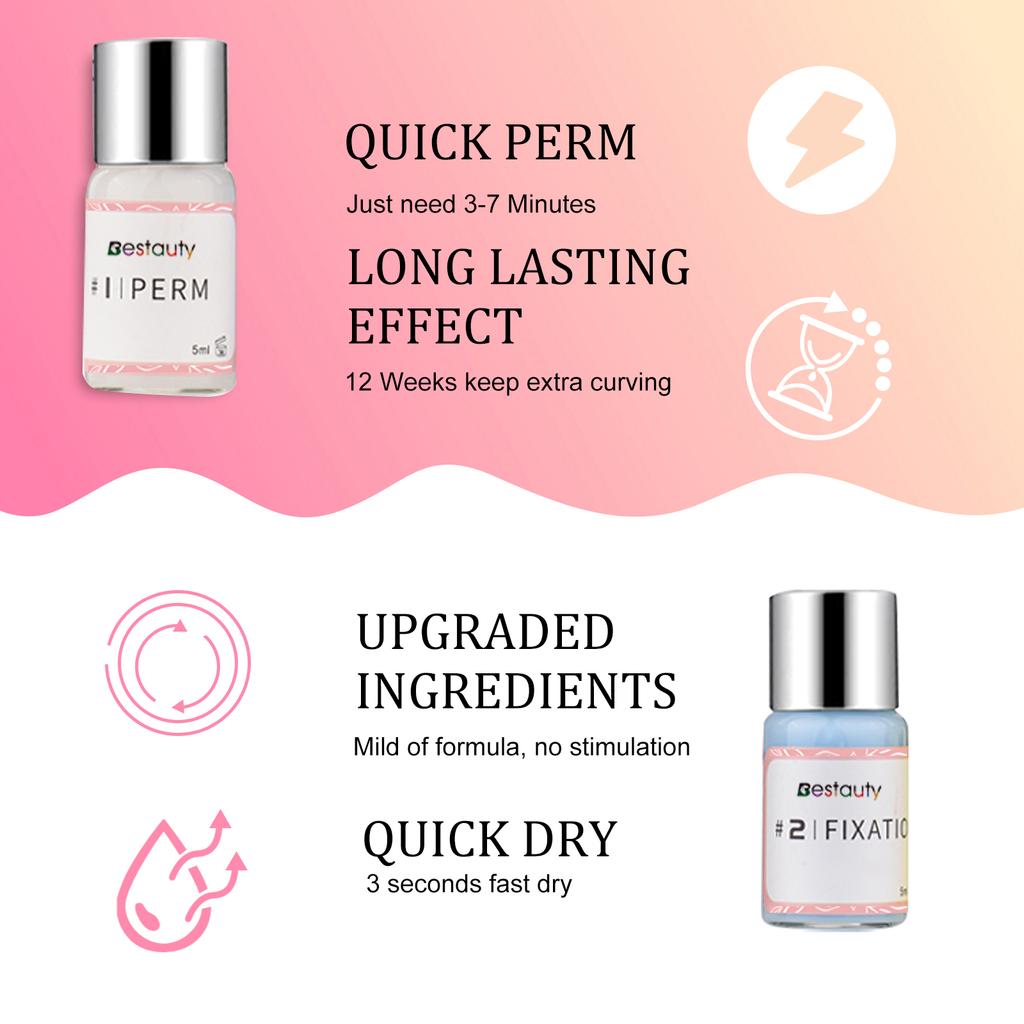 Растворы для подтяжки ресниц имеют водную основу, безопасны для нанесения без раздражения, что делает ресницы завитыми и долговечными.