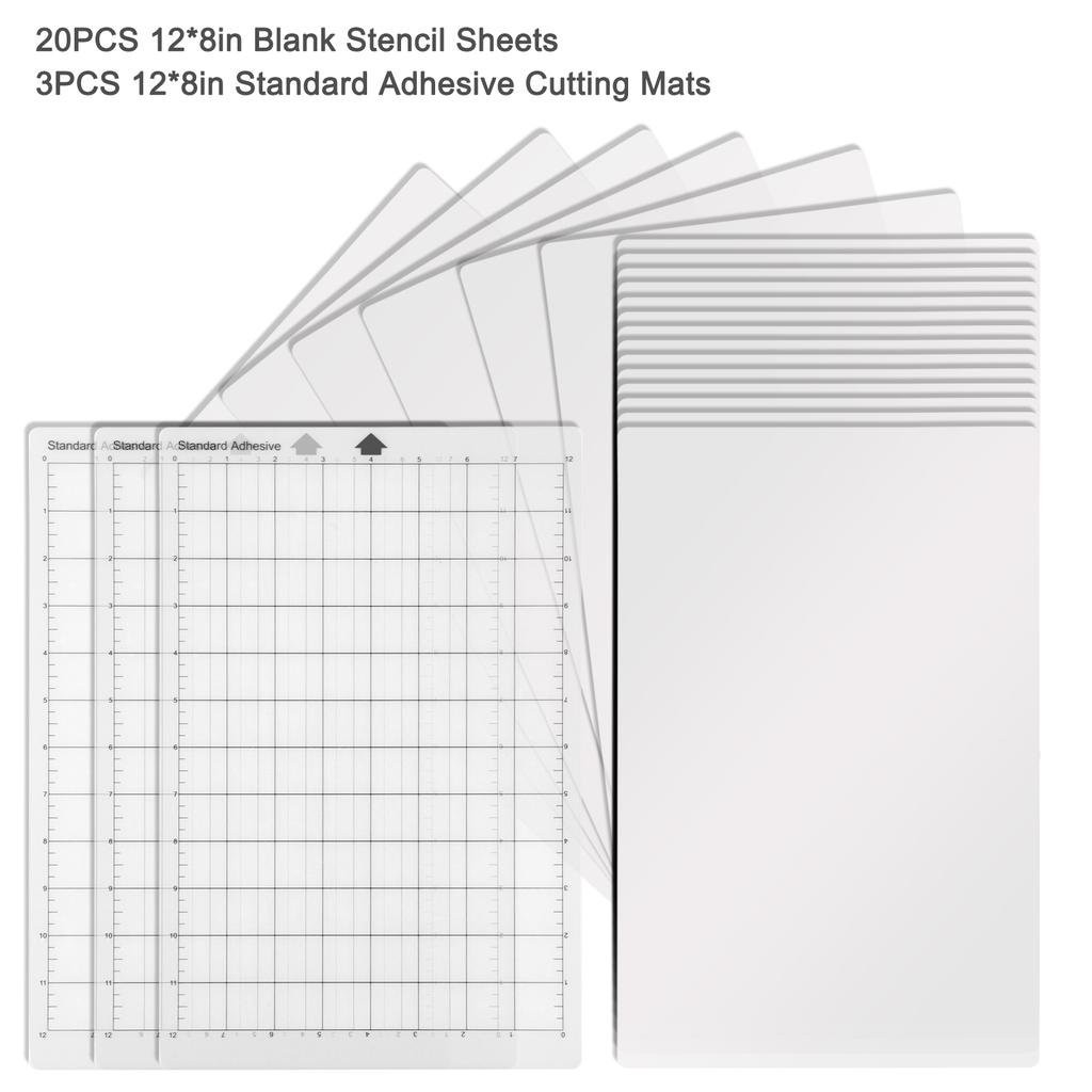 20 шт. пустые трафаретные листы размером 12x24 дюйма с 3 шт. сменным ковриком для резки, нескользящим стандартом с сеткой