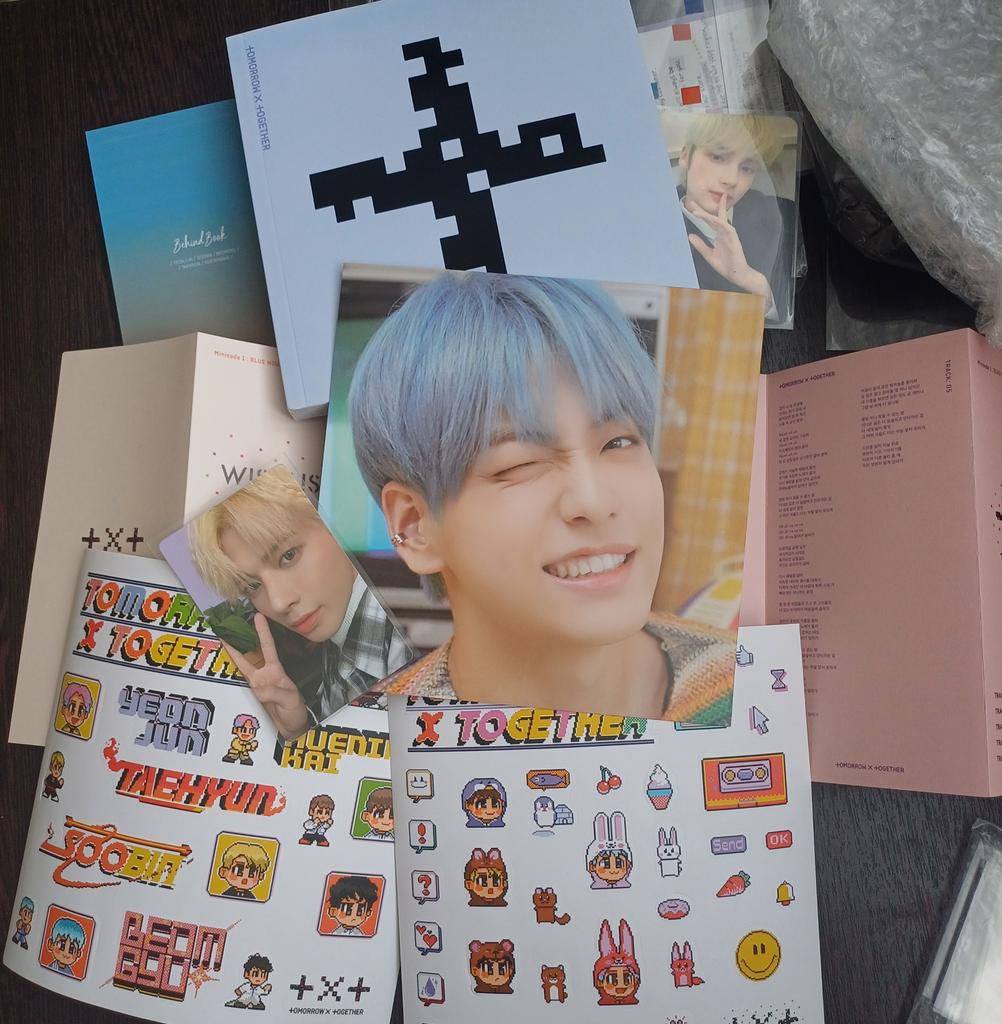 Давно хотела эти альбомы🥰 Они очень красивые🙌 Посылку отправили 22.11, получила ее 26.12 Посылка приехала с актом о том что ее вскрывали, что-то не понравилось на таможне. Не смотря на это всё пришло целое. Но один альбом приехал весь потертый, не понятно из-за чего он такой, так как он был запакован в пленку. Такое ощущение, что его катали по полу лицевой стороной😅 Очень хотела чтобы попался Субин, но видимо не судьба😭Зато мне его в подарок положил магазин👍 А так, все нормально💜