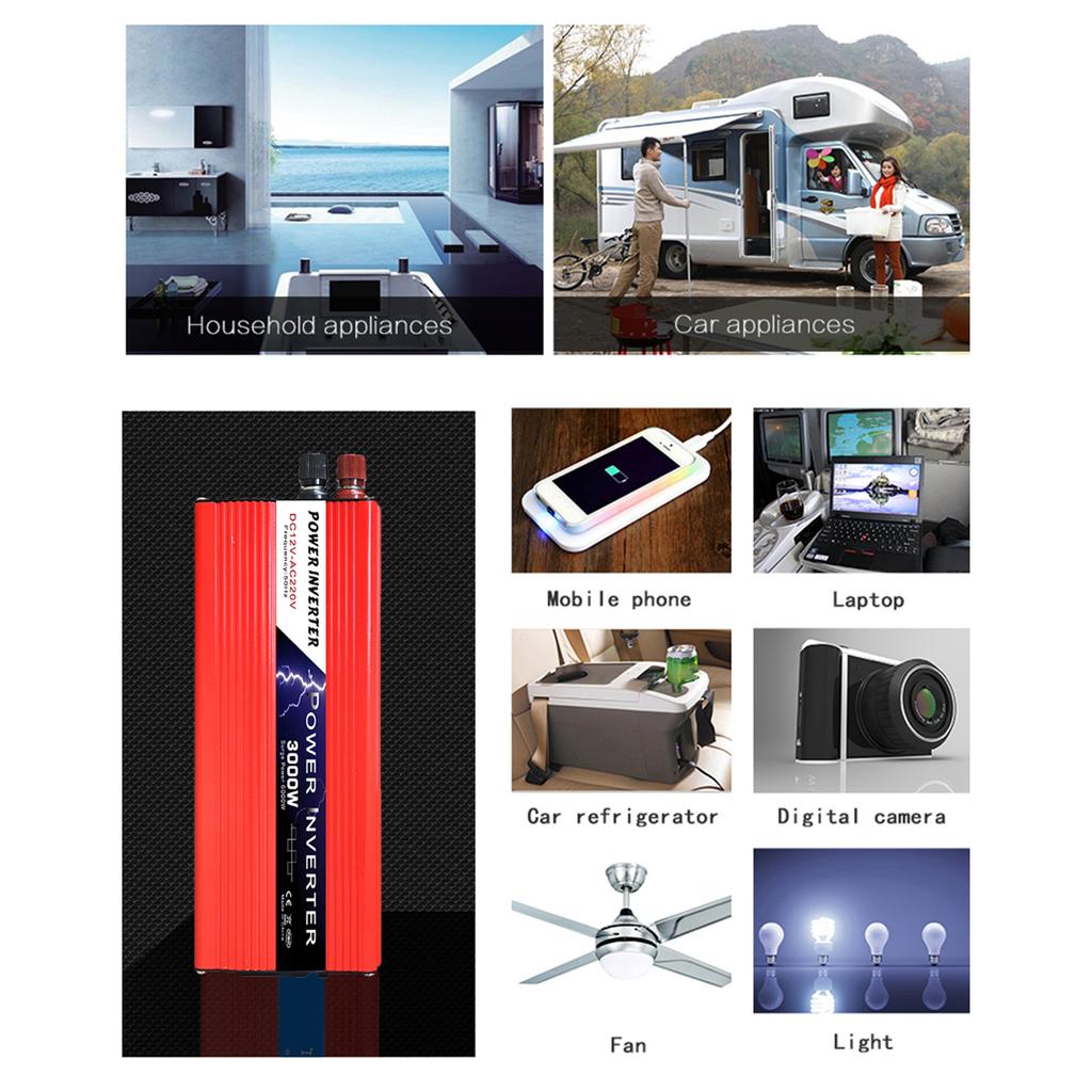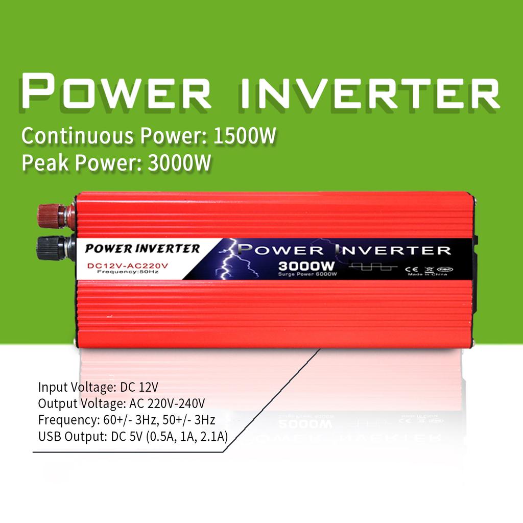 Инвертор солнечной энергии Модифицированный синусоидальный инвертор 1500 Вт/3000 Вт(Вершина горы) От 12 В постоянного тока до 220–240 В переменного тока