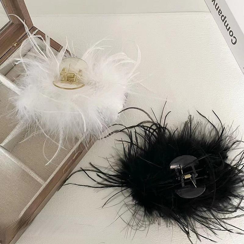 Милые страусиные перья, коготь для волос, плюшевые зажимы для волос, зимние заколки, модные женские заколки, аксессуары для волос, вечерние