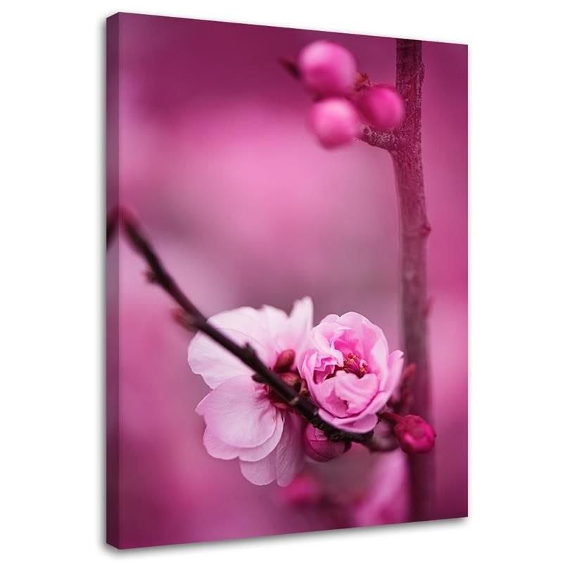 Canvas print, Pink flower and buds on a branch
