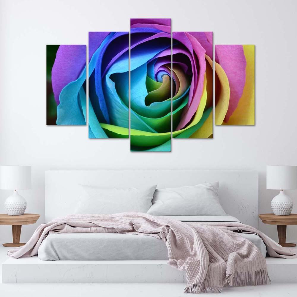 Feeby Feeby Five piece picture canvas print, Colourful rose