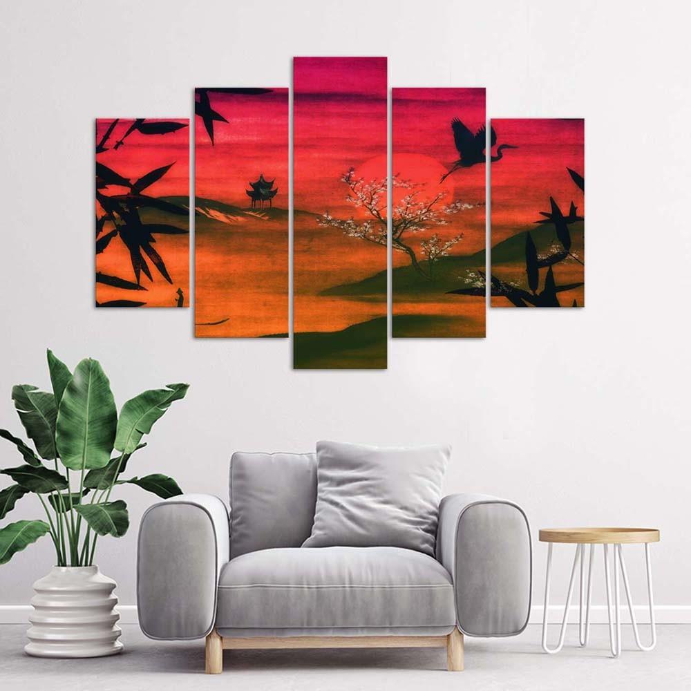 Feeby Feeby Five piece picture canvas print, Japan bathed in sunlight