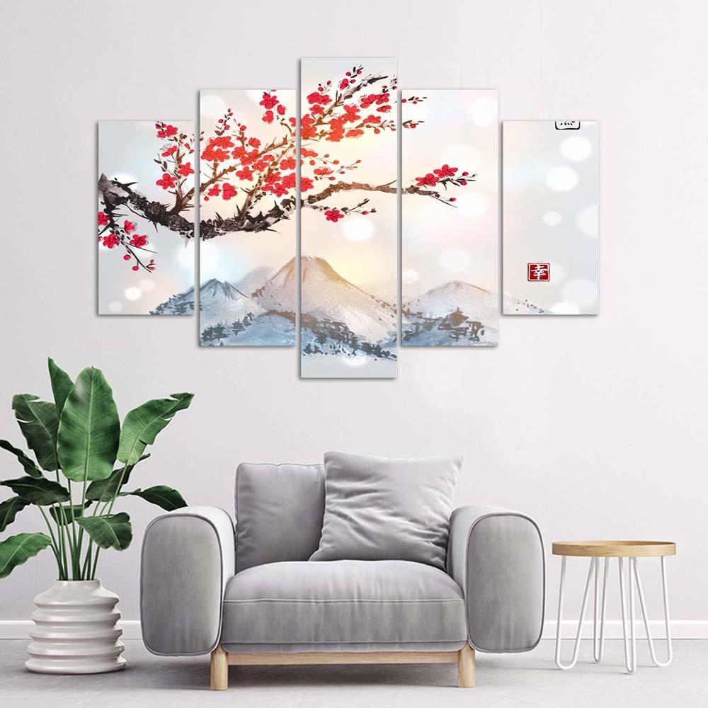 Feeby Пятикомпонентный холст с принтом, Страна цветущей вишни