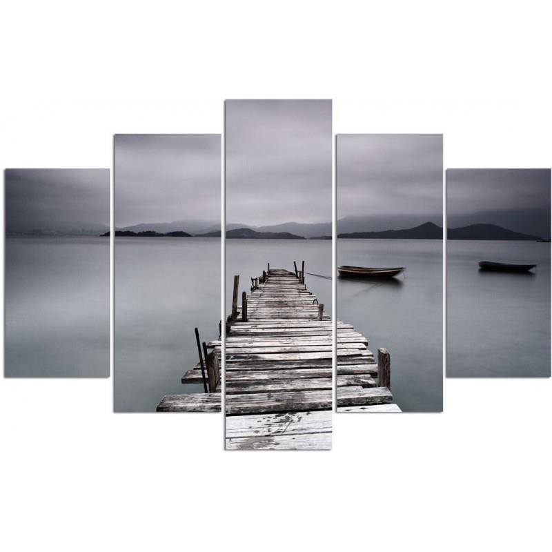 Feeby Five piece picture canvas print, A pier and a boat