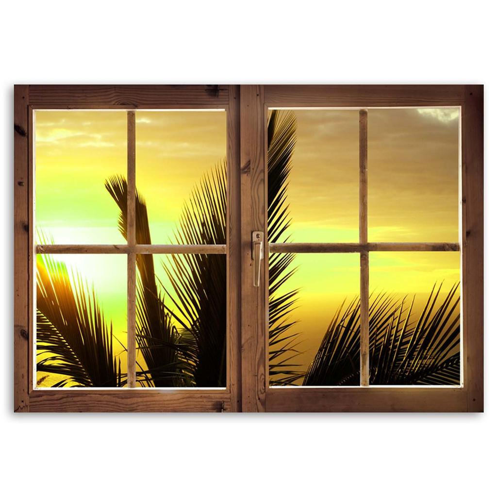 Canvas print, Window - view of palm tree leaves