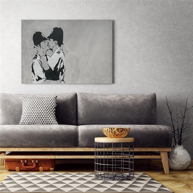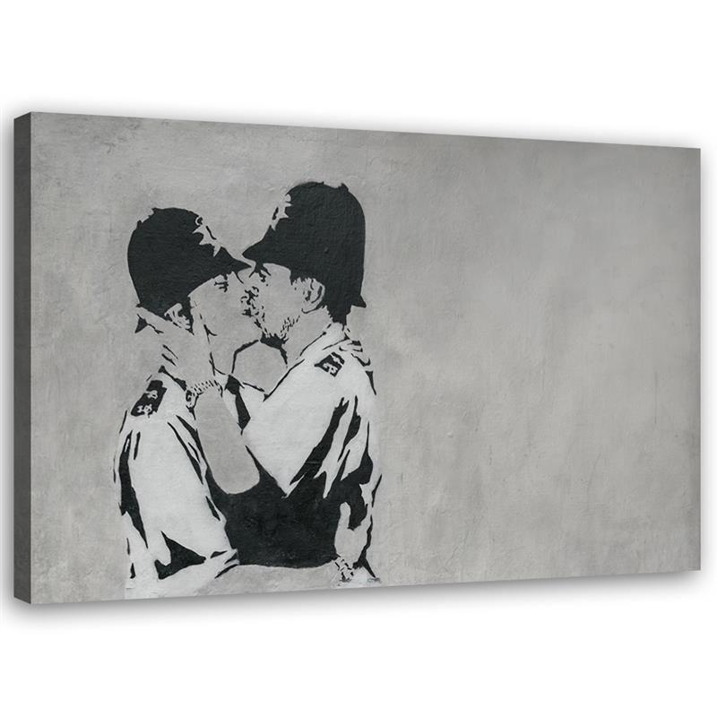 Холст, мурал «Целующиеся полицейские» Бэнкси