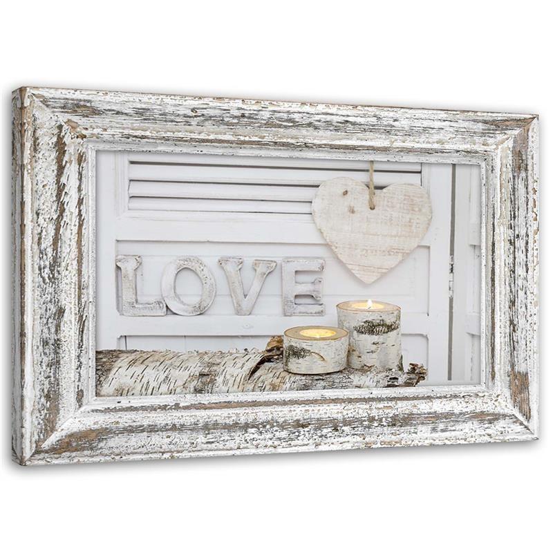 Canvas print, Home lettering and heart in birch tones