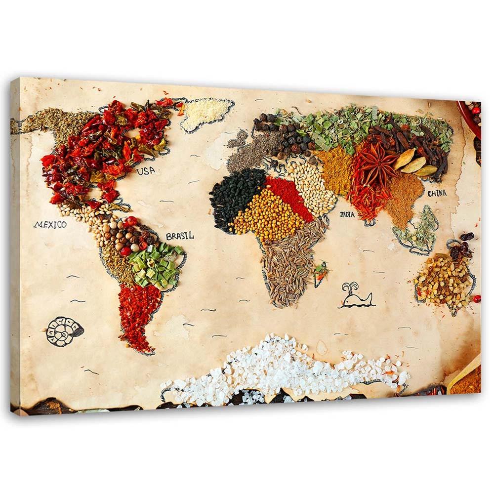 Canvas print, Map of the world with spices