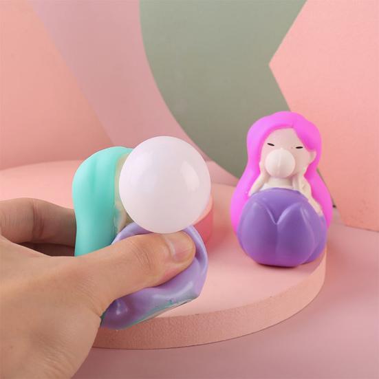 Когда вы сожмете симпатичную мультяшную куклу русалки, сожмет игрушку, ее рот будет выдувать пузырь. Подходит для ваших близких или особых людей, которым необходимо расслабиться и снять напряжение, а также отлично подходит для улучшения гибкости рук.