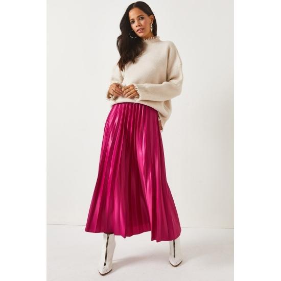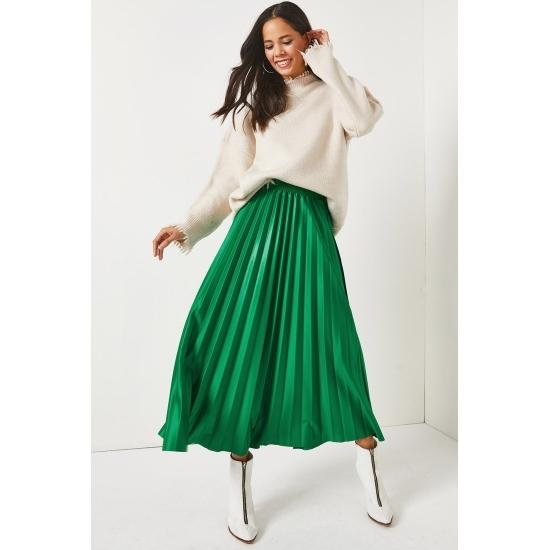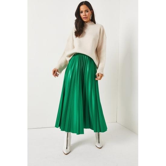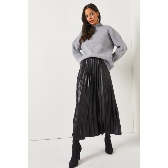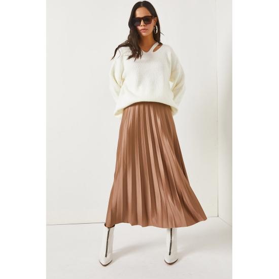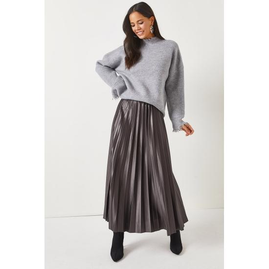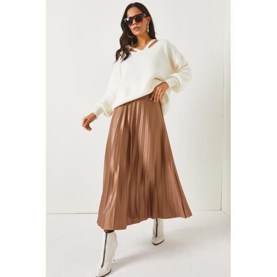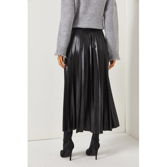 Женская юбка Кожаная юбка-колокол с эластичной талией и складками