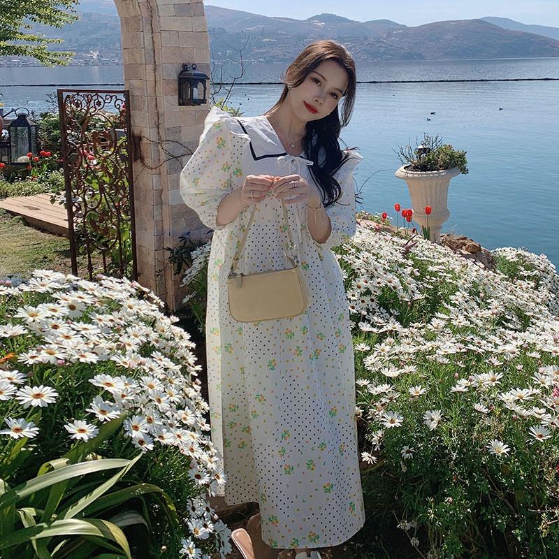 Летние платья во французском стиле с милой волной и цветочным принтом для женщин, большие женские платья с короткими рукавами — купить товар онлайн с бесплатной доставкой по всему миру!