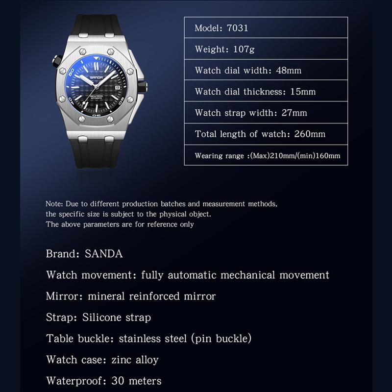 SANDA новый продукт мужские автоматические механические часы кварцевые часы модные спортивные мужские часы