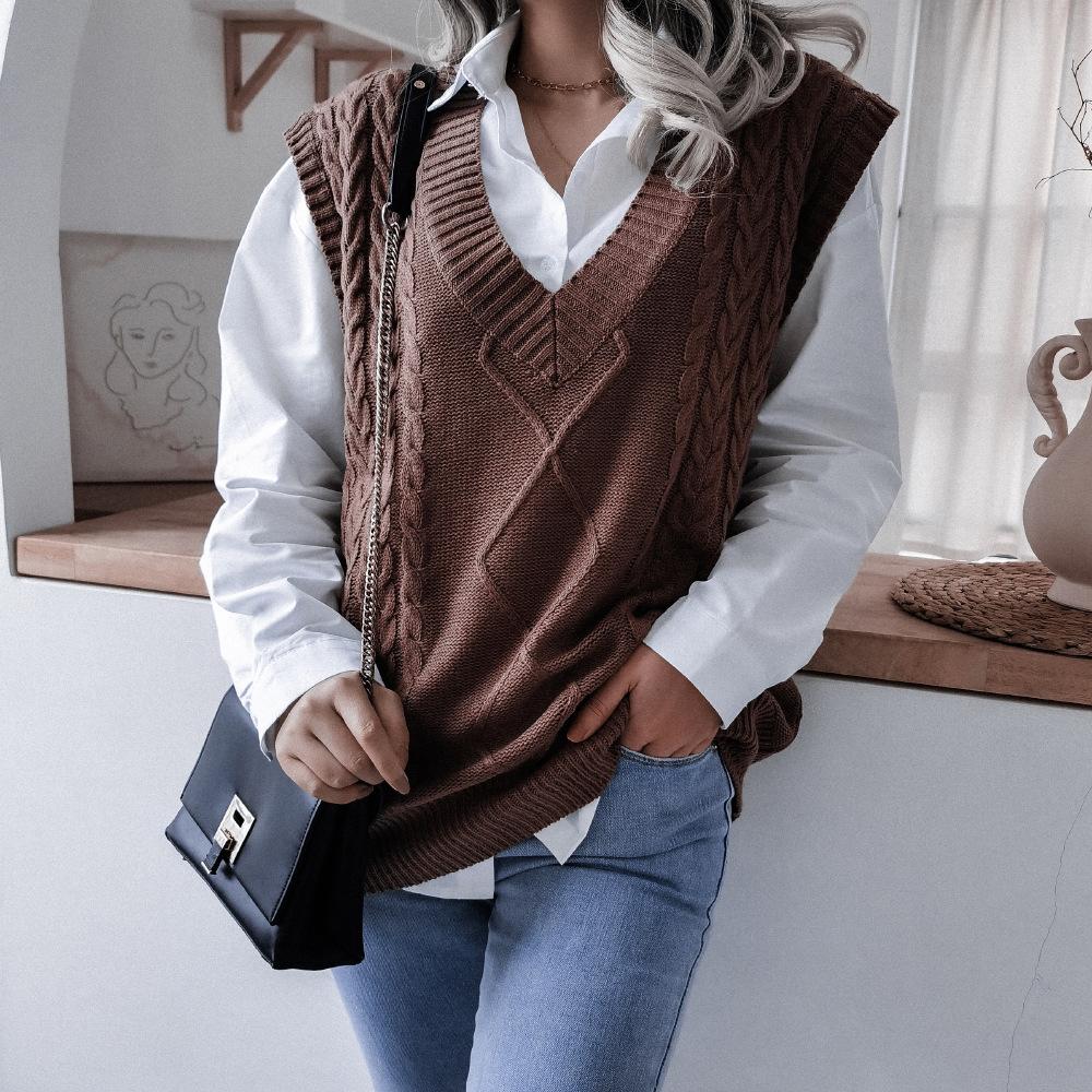 DAFIFY Женская мода повседневные однотонные свитера с v-образным вырезом без рукавов осень-зима с принтом