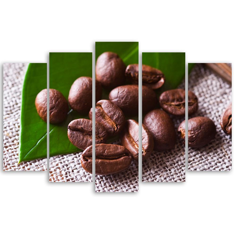 Five piece picture canvas print Coffee bean leaf