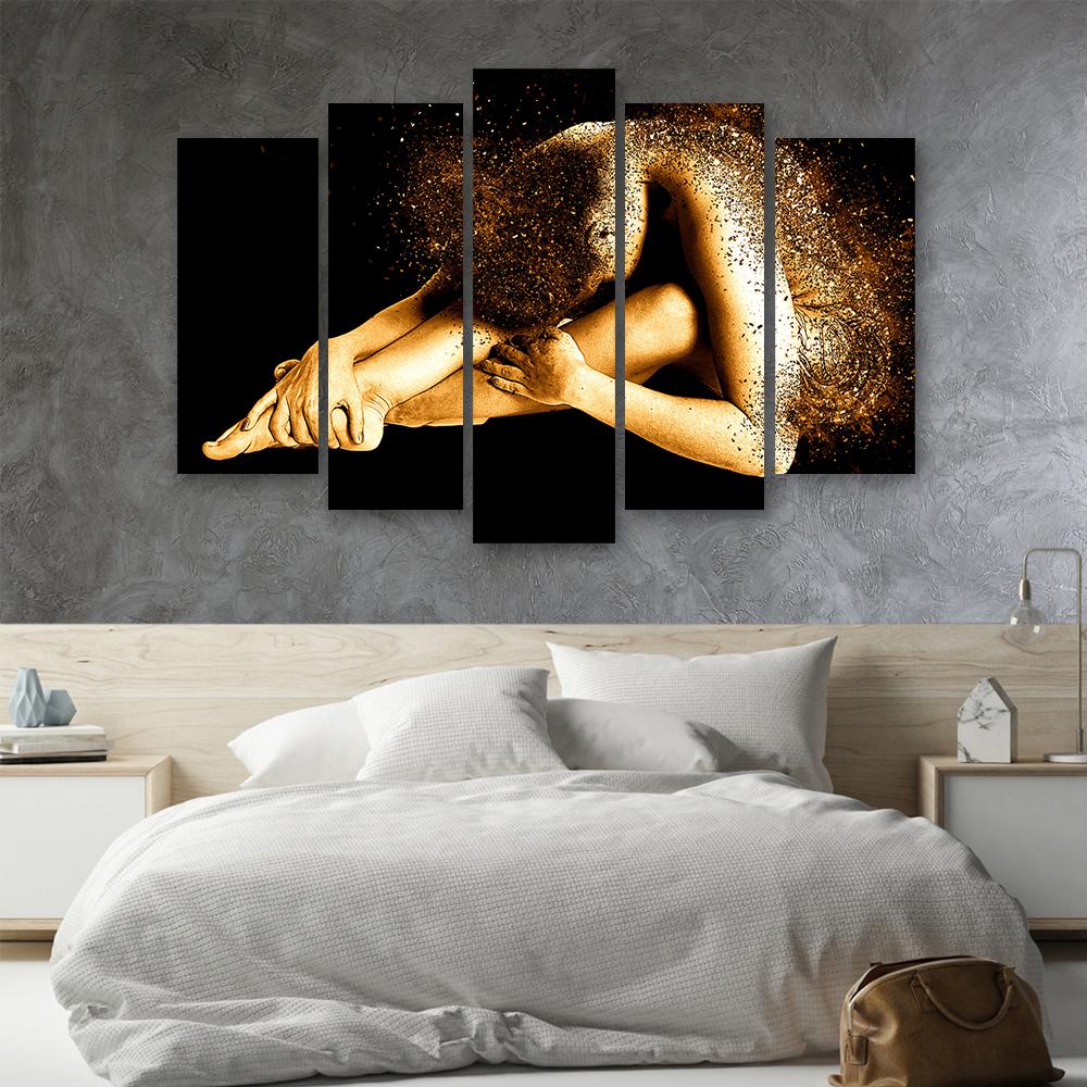 Картина из пяти предметов, печать на холсте, женский, золотой