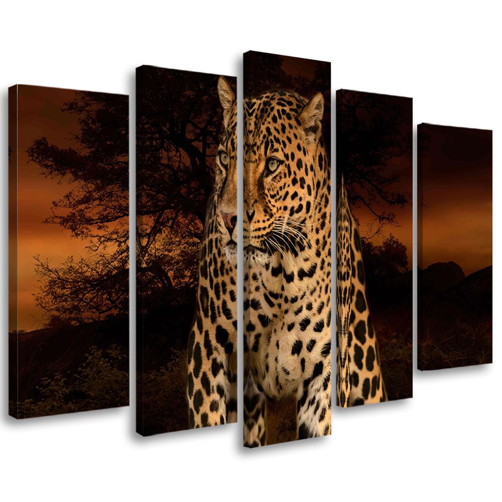 Картина из пяти предметов на холсте с изображением леопардового кота-сафари — купить товар онлайн с бесплатной доставкой по всему миру!