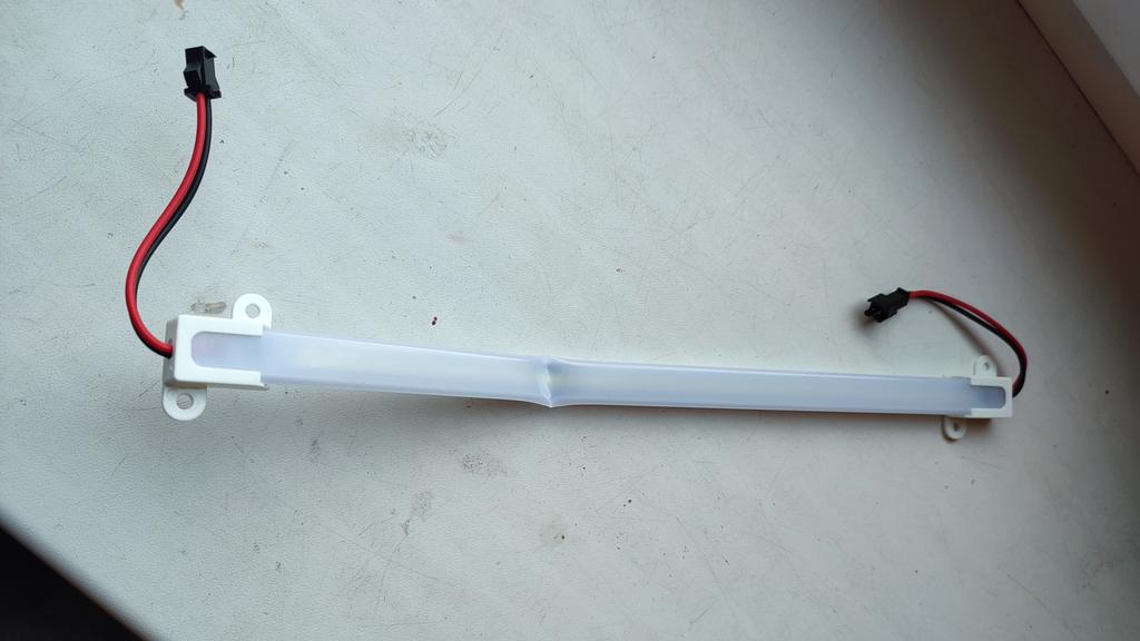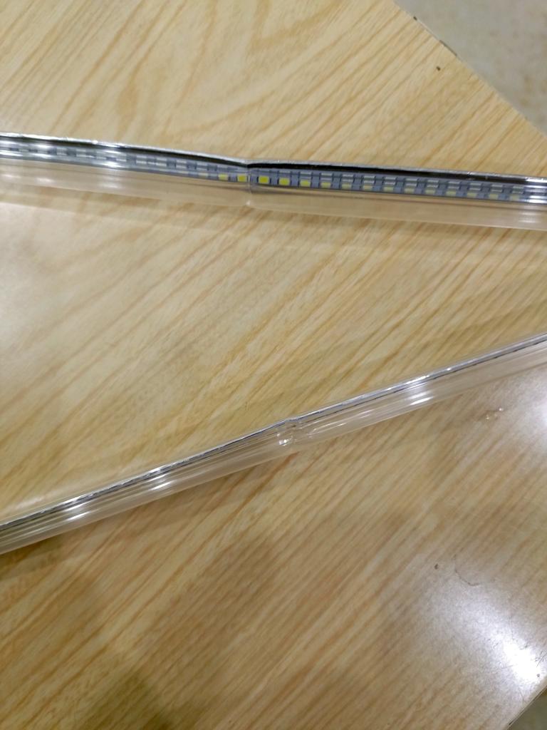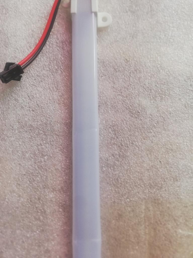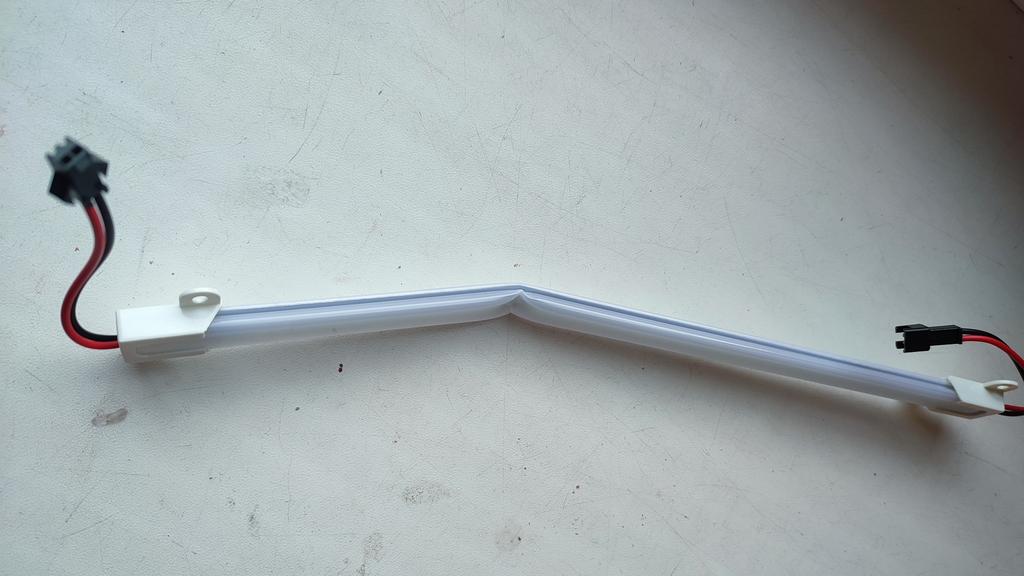 Лампа согнутая. Надеюсь, дорожки и диоды не пострадали. При желании, ленту можно вытянуть. Лампа была упакована в свёрнутую пупырку... Дополняю - работает. Предел минимального напряжения -130В. Дополняю: поработала минут 20 и "сдохла".
