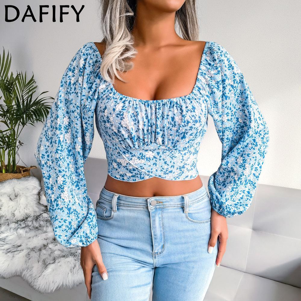 DAFIFY Женские модные повседневные летние весенние блузки и рубашки с длинным рукавом и U-образным вырезом