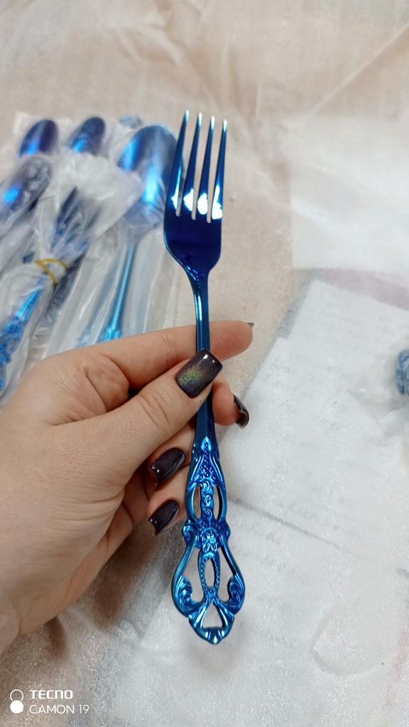 Синий кухонный набор посуды, столовая посуда из нержавеющей стали, нож, вилка, ложки, столовые приборы, длинная ложка для льда, вилка для торта, набор чайных ложек, ужин — купить товар онлайн с бесплатной доставкой по всему миру!