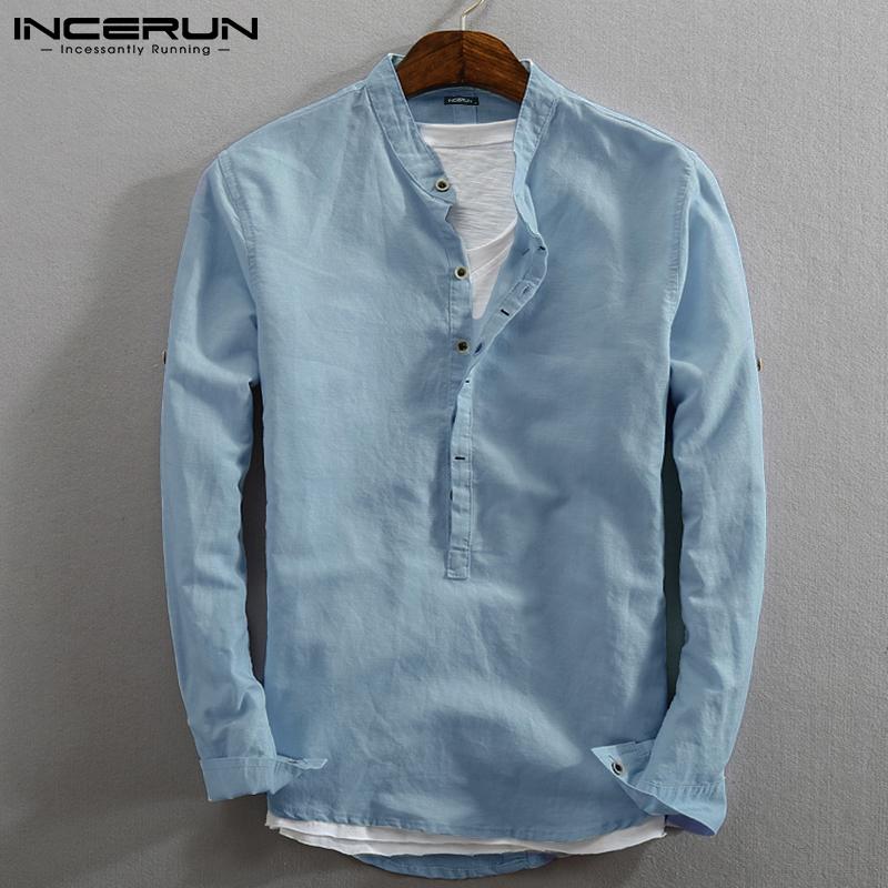 INCERUN Весенние винтажные мужские хлопковые однотонные рубашки с длинными рукавами, топы — купить товар онлайн с бесплатной доставкой до всему миру!