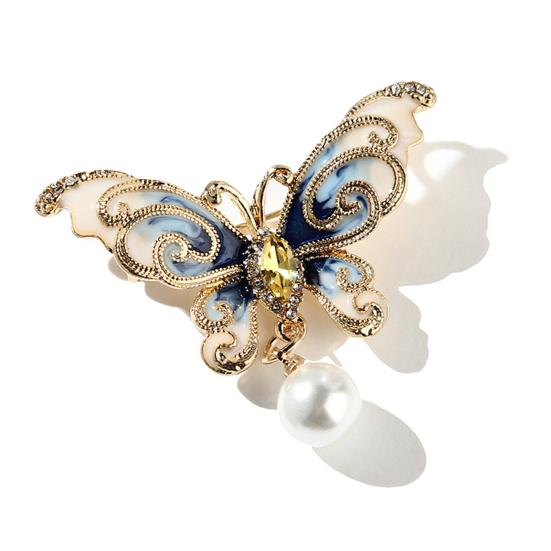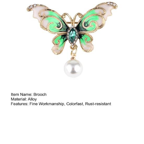 Брошь-булавка с глянцевым блеском для наряда, тонкая работа, стильный искусственный жемчуг, бабочка, аксессуары для одежды