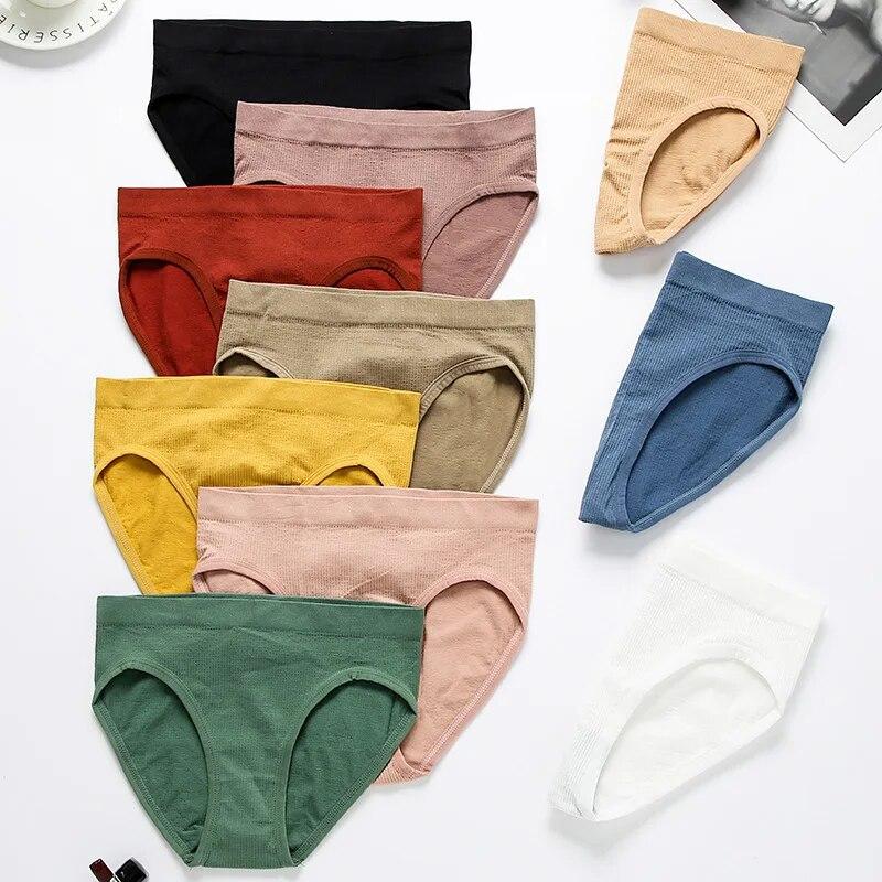 Хлопковые трусики женские ребристые нижнее белье сексуальные трусы с низкой талией удобные бесшовные трусы 10 однотонных мягких трусиков M-XL