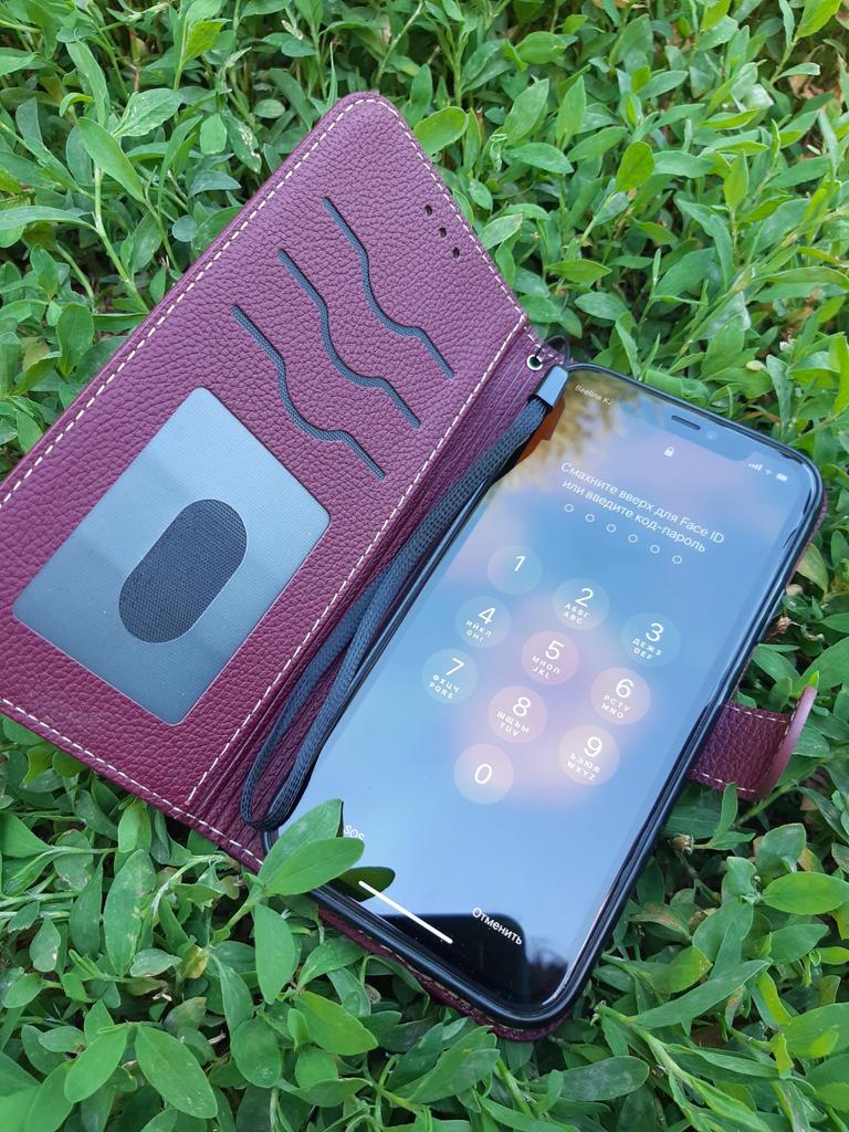 Чехол книжка на IPHONE. Мама пользуется только таким чехлом. Ей удобно что экран хорошо защищён и можно не волноваться о царапинах) Качество выполнения отличное. Всё аккуратно прошить и проклеено. Все отверстия на чехле совпали и не мешают в эксплуатации.