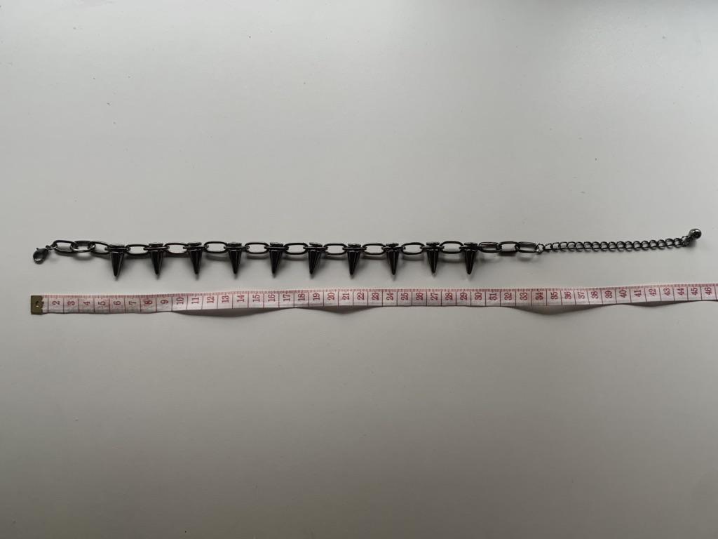 Ожерелье с шипами Не знаю как оказалось в заказе🤡 Придумаю потом куда пристроить, само ожерелье неплохое за свою цену. Цепочка металическая, шипы из пластика, не тяжелое. Длина на 3м фото: 35см + 10см дополнительных звеньев.