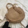 Yogodlns Летняя пляжная сумка, круглые соломенные сумки для женщин, сумка на плечо из ротанга, дорожная тканая сумка ручной работы, большая вместительная женская сумка-шоппер