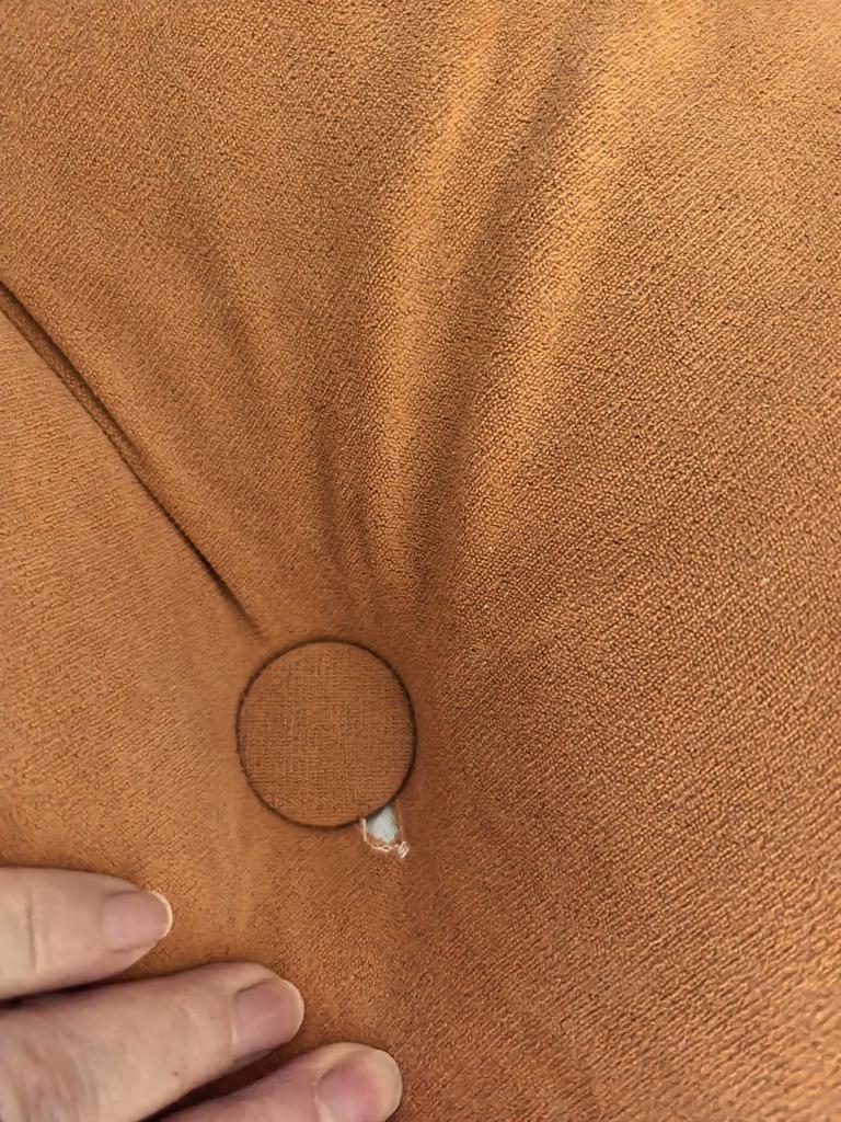 Красивая, мягкая, свою функцию выполняет. Качество конечно полный минус, видно на фото. Отверстия для пуговиц огромные, сквозь них видно белую основу и пуговицы постоянно вылетают из этих дырок. Ну и просто зашитые вручную дырки.
