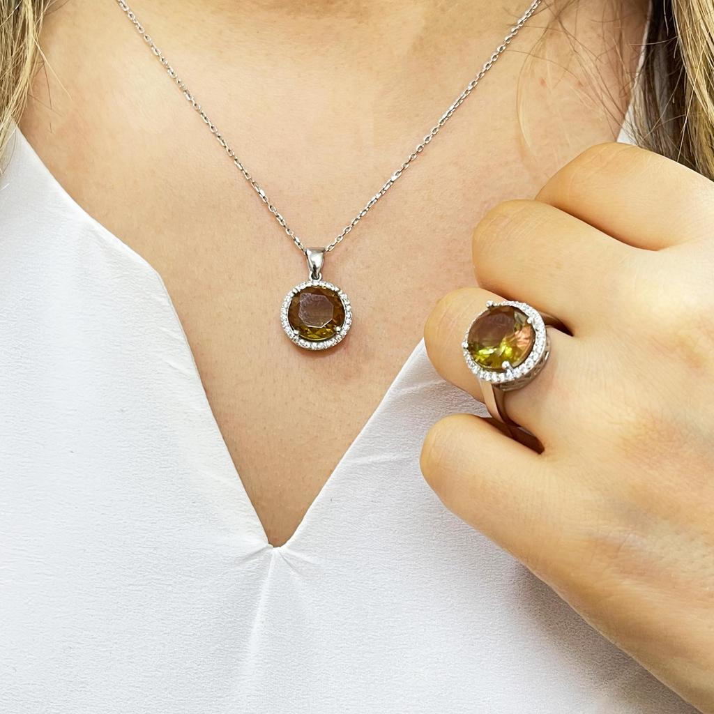 Комплект серебряных украшений из султанитового камня 12 мм, комплект ювелирных изделий с изменяющим цвет камнем, серьга из султанита + кольцо + кулон + ожерелье, турецкая диаспора