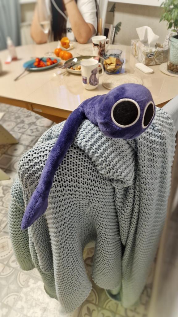 Классный чудик 👾, "радужный друг", заказывала в подарок ребенку друзей, ему понравился 💜 Игрушка пришла в вакумном пакете, выглядела, как упаковка сосисок, быстро расправилась. Этот чудик сшит качественно 😃👌 К муьтику у меня есть вопросы, но персонаж симпатичный.