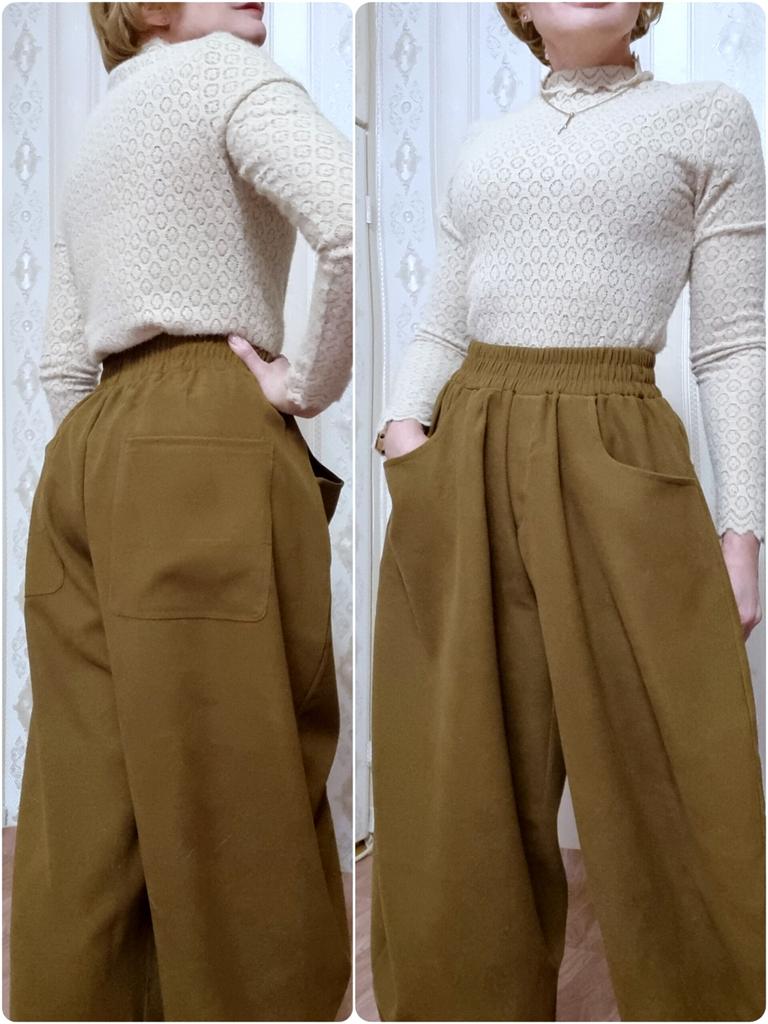 Широкие штаны слоучи-шаровары из микровельвета На мой взгляд, широкие, укороченные брюки очень удобны для повседневной носки. Брюки имеют высокую посадку на поясе с резинкой, которая акцентирует талию. Спереди и сзади имеются по 2 кармана. Штанины в области бёдер очень широкие, а к низу сужаются, но крой свободен по всей длине. Уверена, что непринуждённый силуэт придётся по душе не только молоденьким девушкам. Брюки выполнены из наимягчайшего микровельвета! Они нежные, очень приятные тактильно. По описанию, состав ткани хлопок и полиэстер, но бирок никаких нет. Качество шитья аккуратное. Единый размер имеет обхват талии 60 см, растянется до 86 см, бёдра 160 см, глубина посадки - 38 см, обхват бедра 84 см, по низу штанины 60 см, длина по внутреннему шву 56 см, внешнему - 85 см. Мои параметры ОТ/ОБ 63/89 см, рост 150 см. Мои искренние рекомендации. Личный промокод на скидку 5% на любые товары joom: 0DKZFI4MM4.