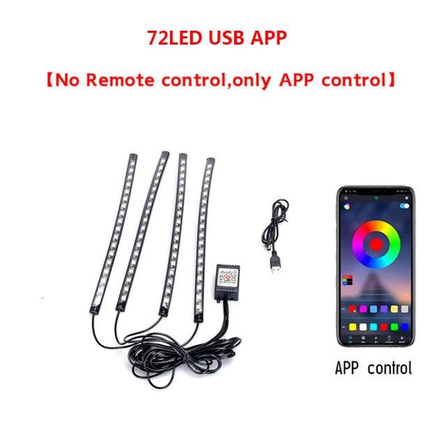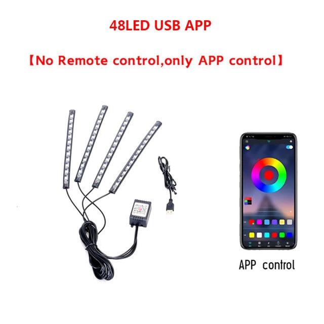 Новый светодиодный внешний свет для ног автомобиля с USB неоновым освещением для настроения Подсветка для управления музыкой Приложение RGB Автоматический интерьер декоративный атмосферный свет