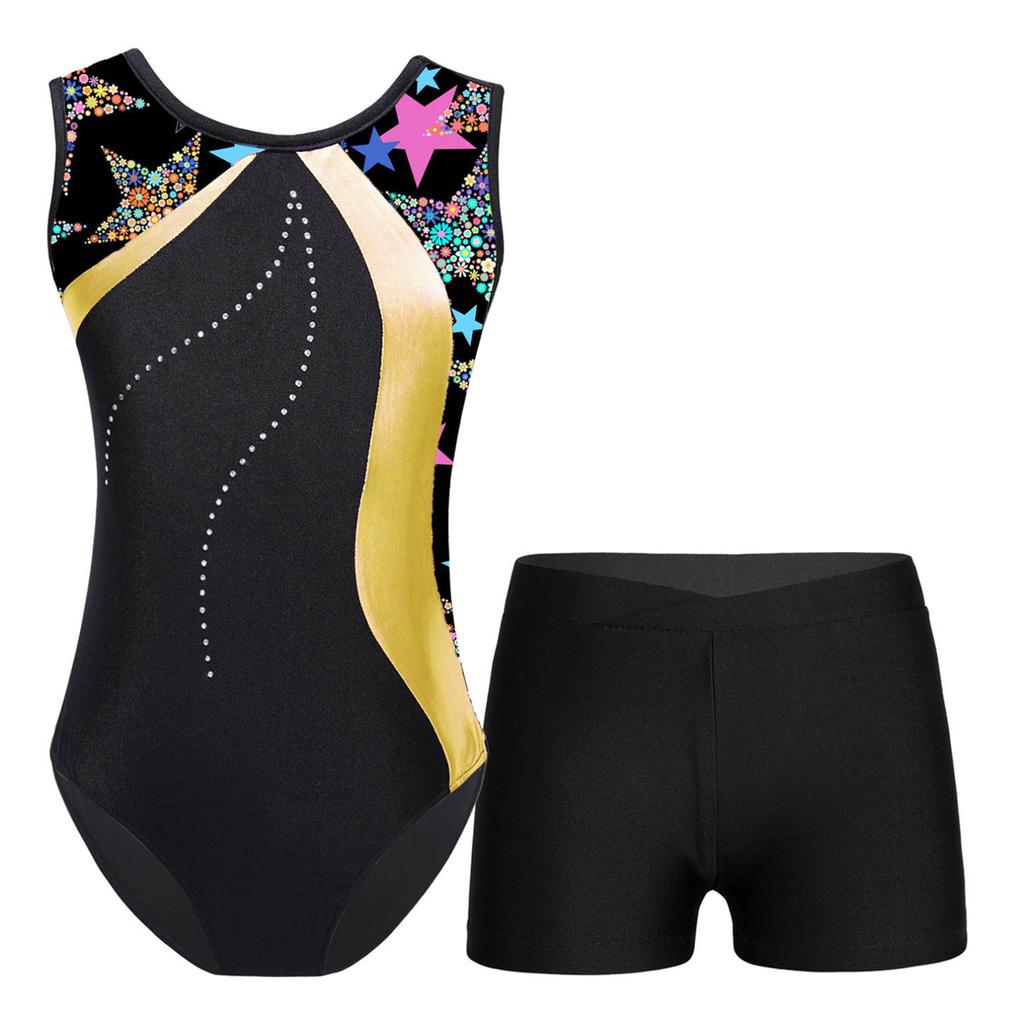 Детский гимнастический купальник без рукавов для девочек с шортами, балетный комбинезон, танцевальная одежда, спортивный тренировочный костюм