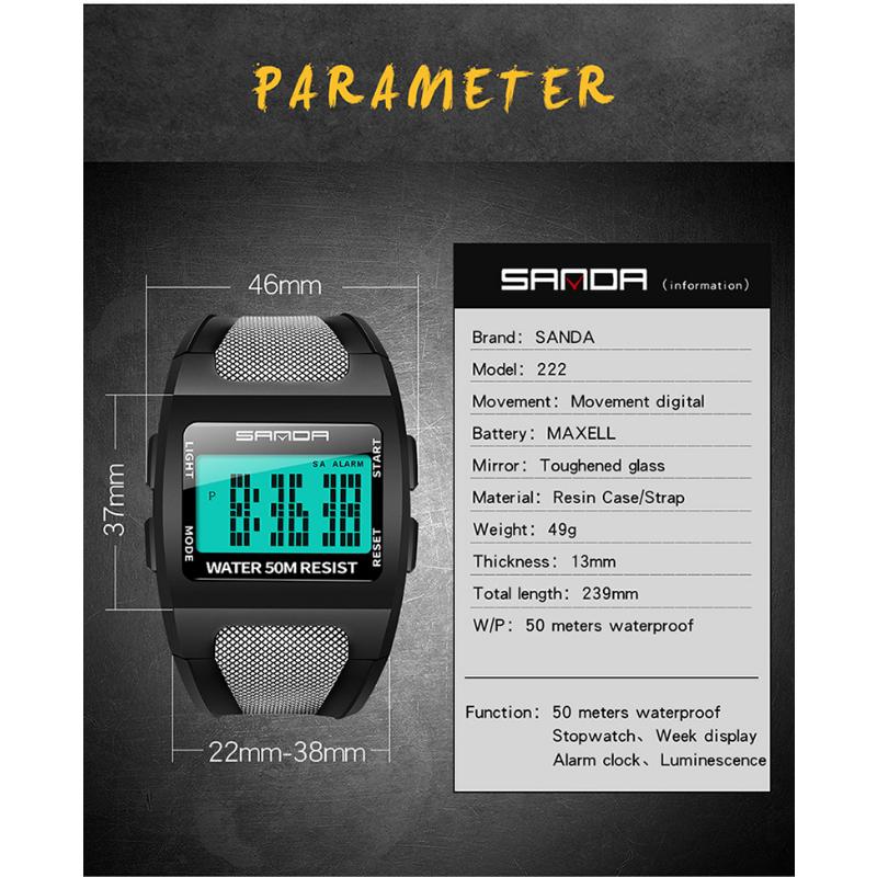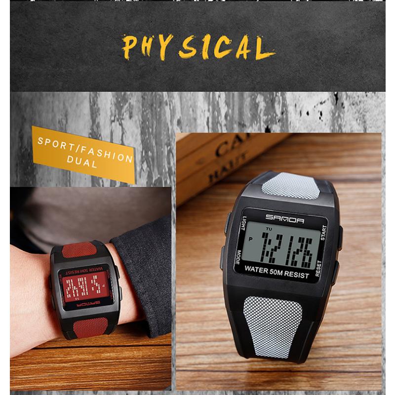 SANDA Мужские спортивные цифровые электронные часы для скалолазания, квадратные многофункциональные водонепроницаемые часы