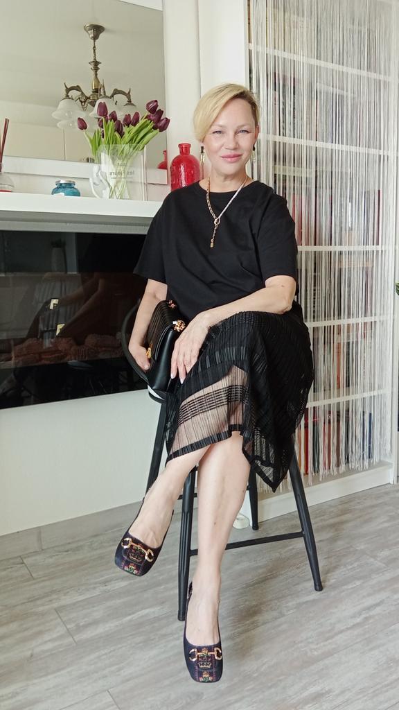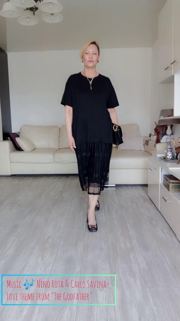 Платье-футболка с плессированым прозрачным подолом 🖤🔲 Всем солнечный приветик 👋😉 Ох, и в пир и в мир его можно надеть 🤩 Имитация что Вы надели футболку с прозрачной юбкой, а это сейчас очень популярно 👌 Хоть с кедами, хоть с каблуком оно будет смотреться интересно. Заказала размер XXXL На мне село очень-очень свободно Подойдёт и на 54 размер На мамуле село с запасом 😊 Ей платье понравилось 🫶 Мамулины параметры: 🎗рост 157см 🎗вес 78кг 🎗длина плеч 42см 🎗объём груди 114см 🎗объём талии 97см 🎗объём бёдер 114см. Мои параметры: 🎗 рост 160см 🎗 вес 54кг 🎗 длина плеч 40см 🎗 объём груди 93см (75D) 🎗 объём талии 63см 🎗 объём бёдер 93см. Качество: 🖤 платье состоит из трёх тканей 🔲 верхняя основная ткань хлопковая футболочная ткань, почти тянется, не светит и держит форму 🖤 нижняя часть прозрачная плессированая ткань типо шифона 🔲 под шифоновым слоем есть привычная синтетическая ткань подклад 🖤 подклад есть только снизу 🔲 О-образный ворот 🖤 плечи приспущены 🔲 рукава и пройма широкие 🖤 швы ровные 🔲 качество отличное. Точные замеры платья: 📏 ОГ - 124см 📏 ОТ - 124см 📏 ОБ - 128см 📏 длина футболочной части - 73см 📏 вся длина платья от плеча - 123см 📏 длина плеч - 54см 📏 длина рукава от воротника - 39см 📏 длина рукава от плечевого шва - 20см 📏 объём рукава в пройме - 46см 📏 объём манжеты - 38см. Мы платьем довольны очень-очень и рекомендуем его всеми ручками 🤗💞 Спасибо, продавцу и Джуму 😘 Чмок-чмок-чмок, всех кто со мной на Джуме 😘 Желаю удачных покупок 🛍😊 терпения 🤗 и весны в душе 🌈☀️🌱🦋🌼💕🐞🌳🕊 До скорого 🙌😊 Песня во втором видео: Boni.ka "Lonely" 🎶💃🎶