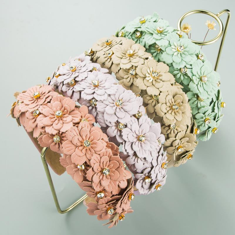 Женская повязка для волос, повязка на голову из яркой кожи с кристаллами и цветком, однотонная повязка на голову Sen, свадебный головной убор Corolla