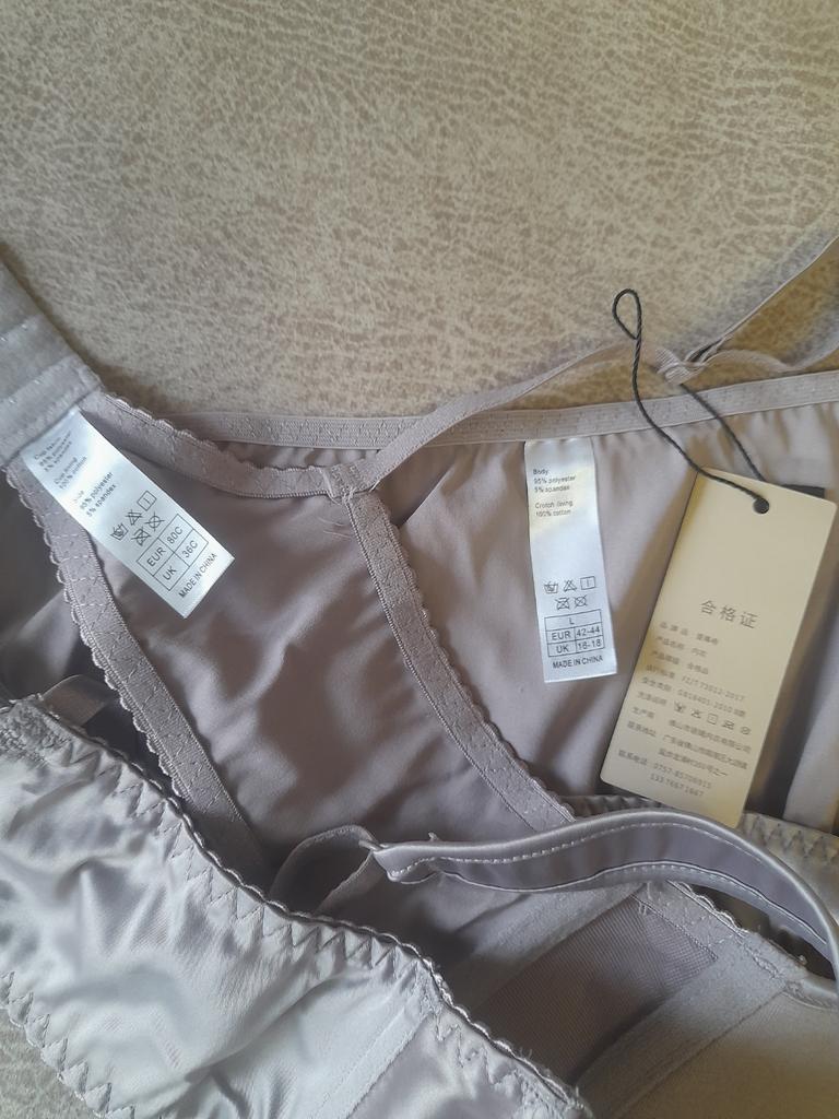 Комплект просто бомба! Я очень довольна! Сшит аккуратно, швы ровные, торчащих ниток нет, пошив фабричный. Бирки с размером и составом вшиты и в бюстгальтер и в трусы. Ткань мягкая, к телу приятная, блестит. Бюстгальтер держит грудь на 10 баллов, при том что поролоновые вставки тонкие. Чашки закрывают грудь только на половину. На мои параметры: ОГ - 94 см, ОТ- 80 см, ОБ - 98см, обхват под грудь- 78 см, размер 80С сел идеально.