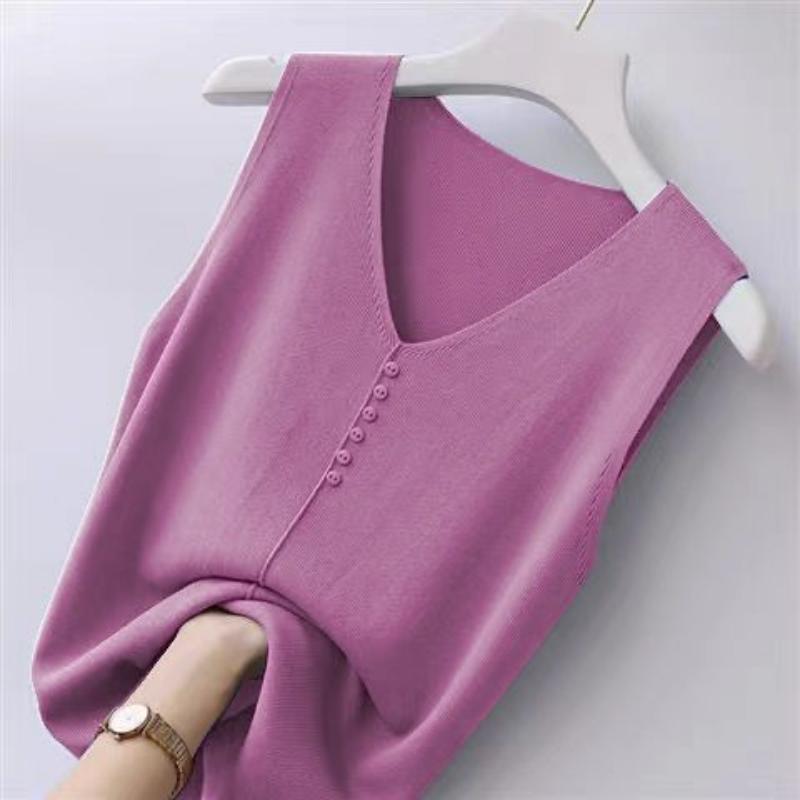 Летняя женская рубашка большого размера без рукавов из ледяного шелка, свободная короткая рубашка с v-образным вырезом, топ, жилет