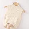 Летний трикотаж без рукавов, джемпер с высоким воротом, футболка, женский однотонный повседневный жилет в рубчик, облегающий крой