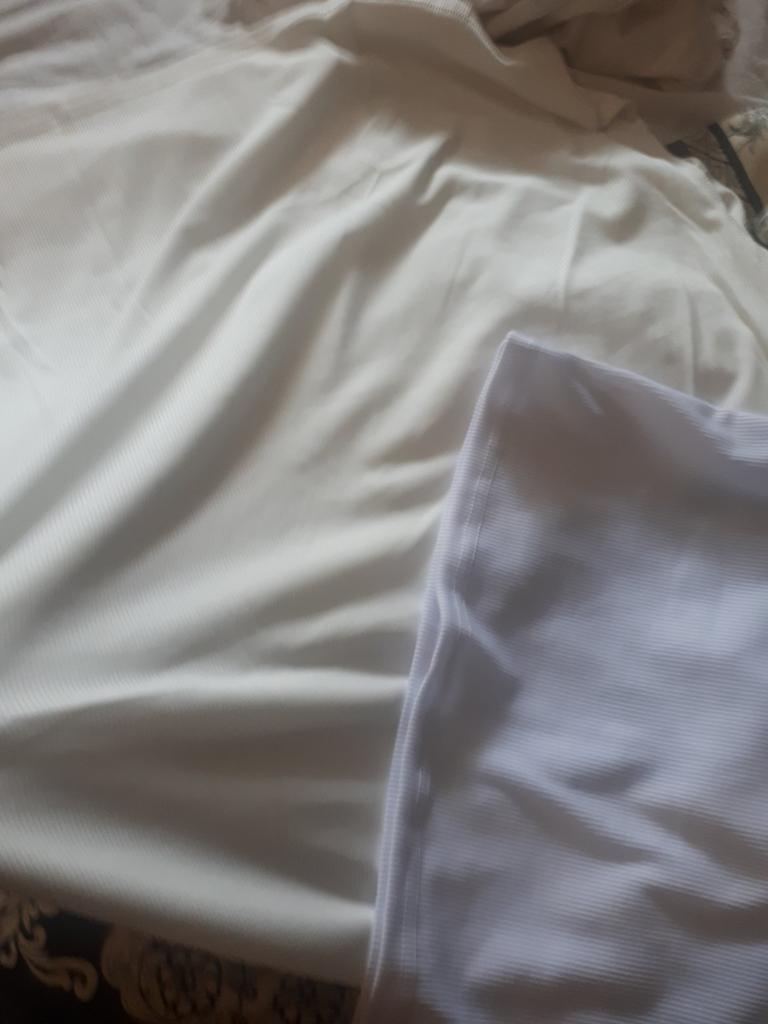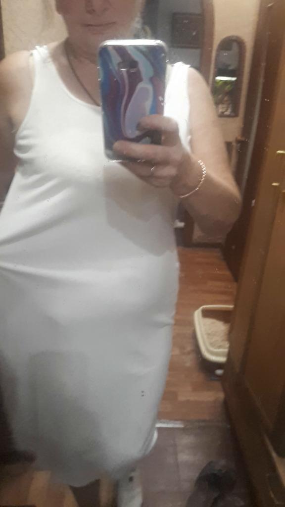 Ориентируясь на предыдущие отзывы, заказала 2хл.Оказалось платье велико и в талии ,и в бедрах сантиметра на 2-_3 с каждой стороны ,на мои102-85105.Ткань тонкая ,не супер белая. Первое впечатление -белая длинная майка ,может в другом цвете смотрится по- другому! Попробую ушить его ,может платье заиграет заново!Цвет платья на фоне белой майки с Джума Длинна на рост 172 длиннее сантиметров на 10 чем на модели!