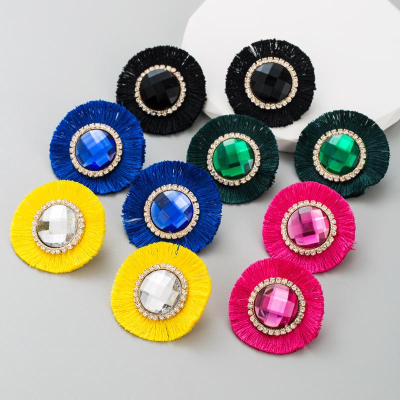 Женские серьги с кисточками, инкрустированные цветным стеклом и кристаллами, серьги-капли высокого класса, преувеличенные серьги
